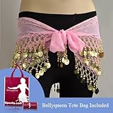 - Bellyqueen™ Chiffon Dangling Gold Coins Belly Dance Hip Scarf, Tote Bag Included