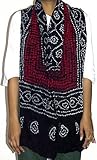 Indian cotton scarf is often long and narrow, usually worn on or near the head, for warmth, fashion, cleanliness, or religious purposes. In dry, dusty climates, or in environments where there is a lot of airborne contaminants, a thin scarf is often worn over the head to keep the hair clean. Over time, this custom has evolved into a fashionable item in many cultures, particularly among women. Scarves in India have a significant place and traditional value. They are significant because they are considered a protector of women's integrity. Women's outfit in India is considered incomplete without a long scarf. The fabric of a scarf can be cotton, chiffon, georgette, silk, net or sometimes mixed too. These are integral parts of the salwar kurta, lehenga, and churidar. With cultural exposure from Europe, these scarves found their way to the western wardrobes too. Features: You can also use them as "Wrap around Sarongs for Beach"., Cotton Scarf Size: 88 inches x 40 inches, Handloom cotton fabric and block / tie and dye print by weavers of Gujarat, Cold water hand wash individually, Formal, business, party and evening dress; alternates as table runners too more...