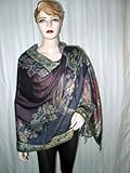 Light Eggplant Floral Reversible India Pashmina Shawl 80"x28" Free Shipp from Mogul Interior